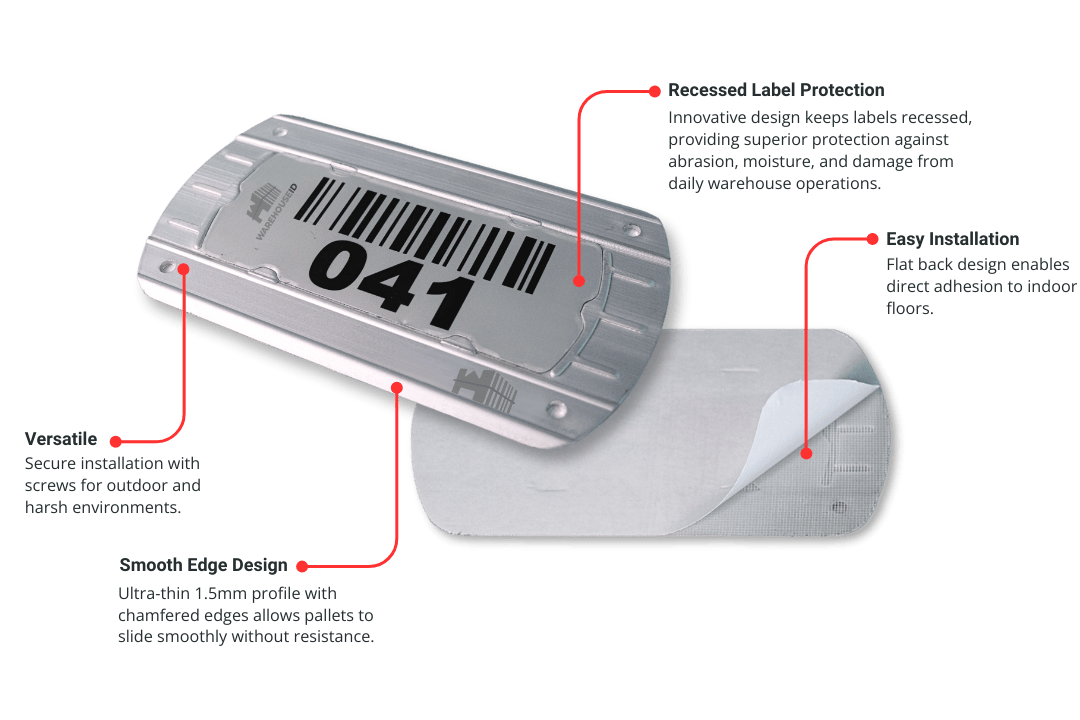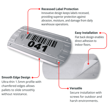 Innovative design keeps labels recessed, providing superior protection against abrasion, moisture, and damage from daily warehouse operations.